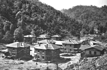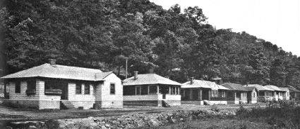 monotonous style of coal camps that had been previously built. The structure on the right was a boarding house.