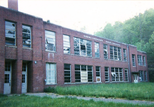 Glen Rogers High School sits empty. It was built in 1951 to replace an earlier structure. The school was closed in 1992 when enrollment dropped under 200 students.