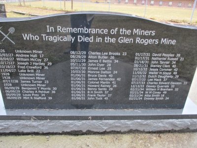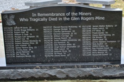 Someone has constructed this nice memorial to all of the miners who perished in the Glen Rogers coal mine.