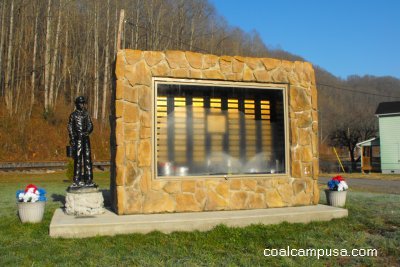 to the coal miners who labored long and hard under very dangerous conditions." Maybe when you visit it there won't be morning condensation inside the plexi-glass, as is visable in this photo.