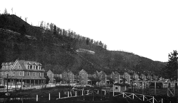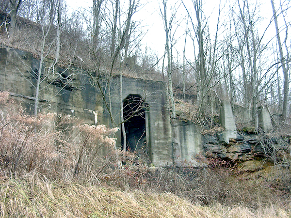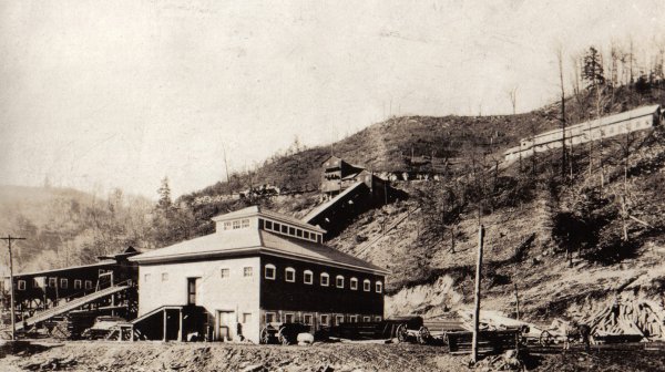 The supply house and the original Stotesbury tipple, with the head house up on the hill in the background.