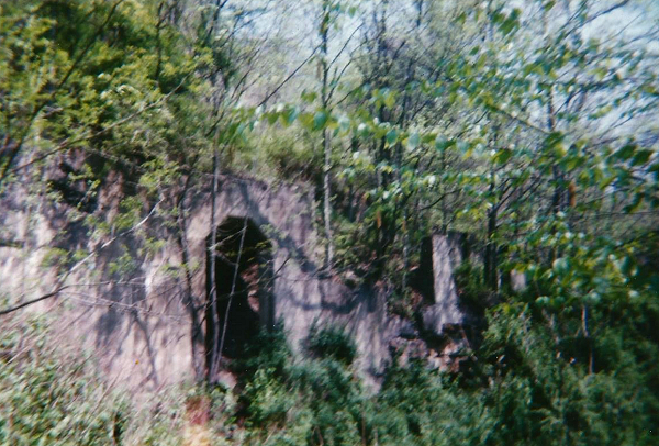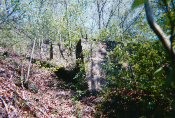 Old cut stone piers going up the mountain for a monitor-car incline or conveyor.