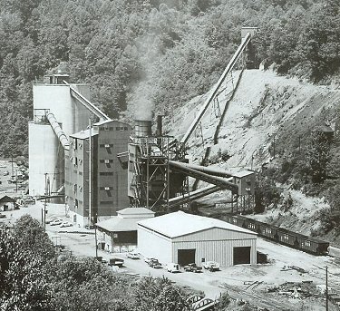 A photograph of Eastern Associated's preparation plant at Stotesbury, built in 1967, shown here probably during the energy boom of the late 1970s. Behind the plant