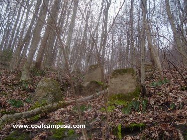 There were two inclines from two mines feeding the tipple at Beards Fork. These concrete piers are the remains of one of these inclines.