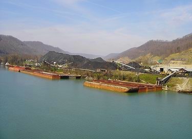 The Kanawha Coalfield has been blessed with the navigable Kanwaha River, enabling economical shipment of coal. Pictured here is the Chelyan Dock.