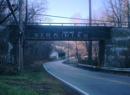 This trestle at Deepwater, Fayette County, still says "Virginian," although the coal hauling railroad was absorbed into the N&W in 1959.