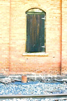Detail on the former Winifrede Railroad engine house. At the time of the photo it had become some kind of fabrication shop.