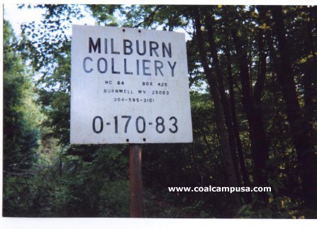 at that time was a concern of the Milburn By-Products Coal Co (mining the Powellton seam). By the time this sign was erected, Milburn Collieries Co. was operating the Milburn mines. Milburn Collieries