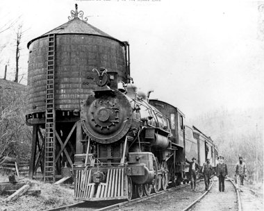 Virginian locomotive stops for water at Pax. Pax, WV not only became a small commercial center for surrounding coal towns