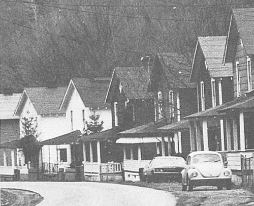 Photo from a December 1974 article in the Huntington Herald-Dispatch titled, "Who Owns West Virginia?" The caption to the photo read, "Company houses, jammed together in narrow hollows like soldiers on a drill field, mark the influence