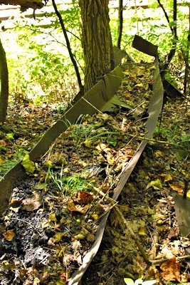 A trolley wire support post (catenary) that is still in existence at the Fayette Mine site.