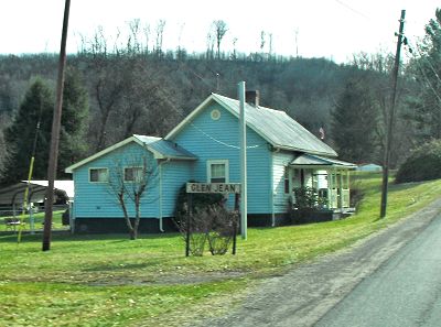 An old coal camp house with the Glen Jean railroad sign. This particular rail spur, which went