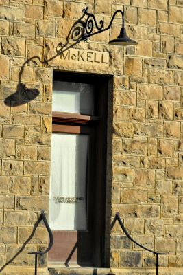 Detail of a door at the rear of the bank building still shows Mckell's name. Perhaps this part of