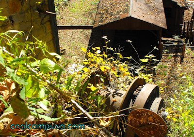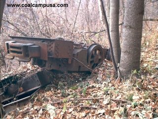 These old mine motors, as well as underground coal cars, are laying around the drift mouth of the mine.