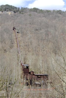 The button line conveyor running up the mountain to the drift portal. Like the tipple it too will probably see some restoration/stabilization.