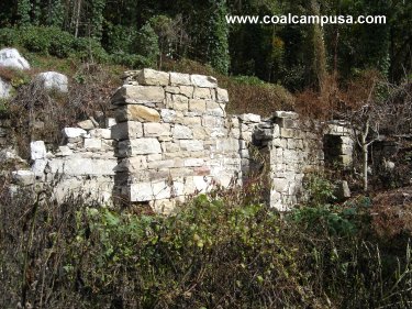 According to the Park Service this is the ruin of the company store. (There is an old mine map that calls this "store".) If this is so, then why did the coal company locate it right at the very end