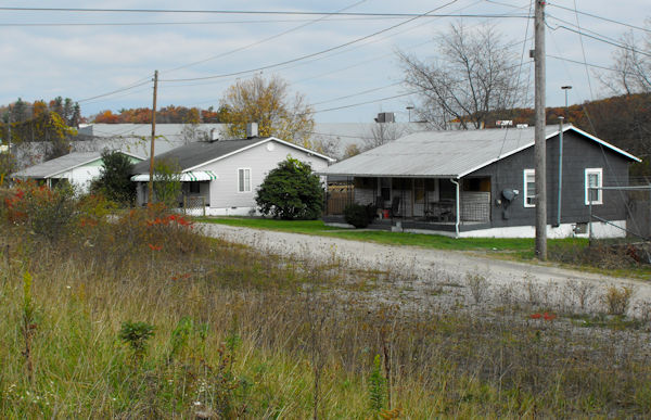 A few of the remaining company houses, some still sporting their original metal roofs. A used car