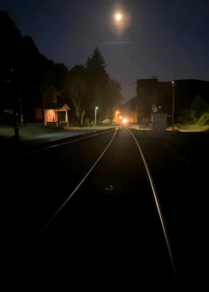 Pass the commercial district and the coaling tower(center) that used to serve the steam locomotives and you will move into the north end of the town.