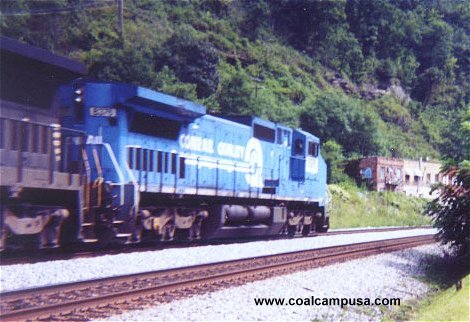 A Norfolk-Southern (even though it says Conrail) coal train rolls through Matewan.