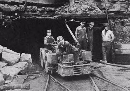 Coal miners at the mouth of one of the Borderland mines. The company mined the Winifrede, Millers Creek, and Thacker seams. Borderland Coal