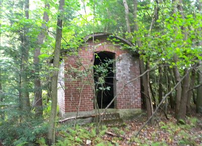 company-built houses here once, almost nothing remains of Wehrum. These ruins are red brick with cut stone, and the two iron pieces appear to have been bearing support stands, perhaps for a hoist or fan.