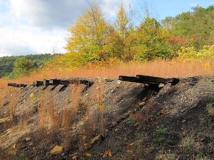 Remains of a rail siding to an old coal mine along the Ghost Town Trail. This is a biking / hiking trail that used to be the grade for the Ebensburg and Blacklick Railroad.