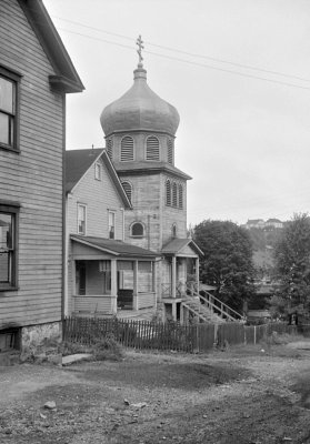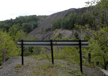 This picture captures some of what's left of Nanty Glo's coal boom days. Huge gob piles and descendents of the immigrants that