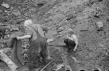 In this vintage government photograph the destitute sift through one of the slate dumps at Nanty Glo
