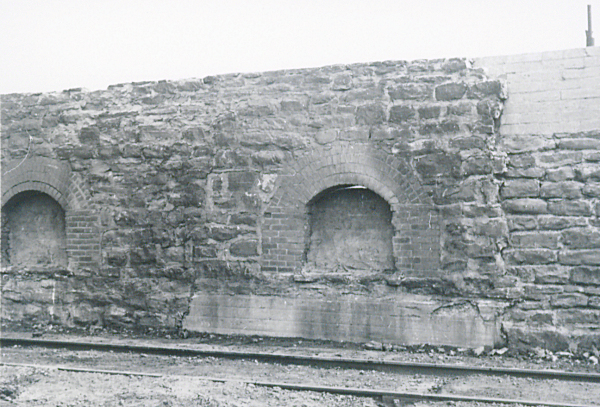 In this view a coke oven is in blast with the door bricked up and covered in mud. Note the small but imporant air gap at the top of the bricked-up door.