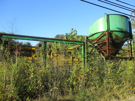 Old coal processing equipment sitting where the tipple/prep plant used to be located. This equipment may have been used lately to reprocess the coal refuse dump at Harmarville.