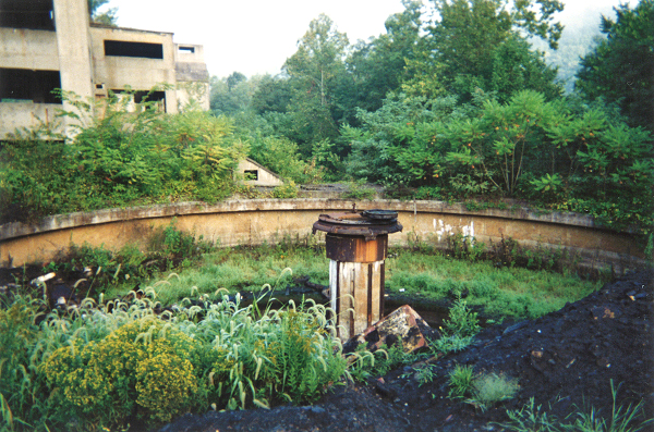 Hulking concrete remains of the coal preparation plant.