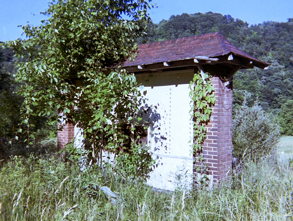 tipple was gone but this hoist house and sign board were still