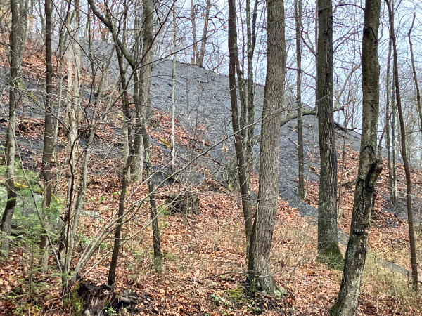 Not much remains of the Peale coal mines other than this slate dump and a few foundations. Clearfield Bituminous Coal Co. (later Corp.)
