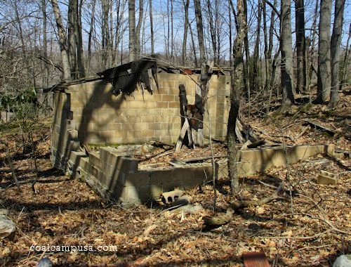 Old stone and brick foundations at the old Wilson Creek tipple site.