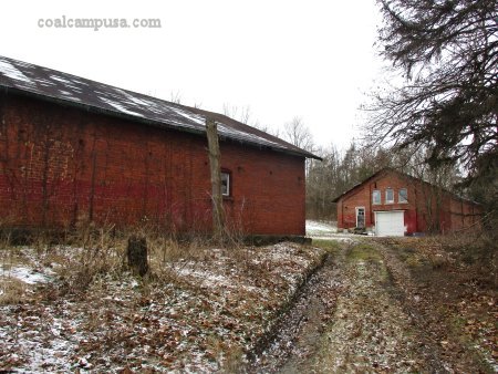 Buildings remaining from the Crabtree coal mines include, on the left, the stable, and on the right, the hay barn. (Jan. 2019 image by author)