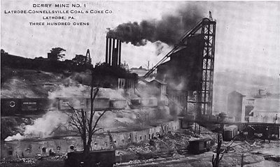 Tipple, power house, and coke ovens of the Latrobe-Connellsville Coal & Coke Company's Derry Mine No. 1.