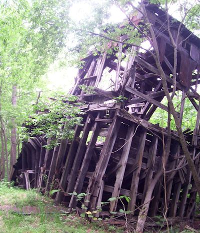 Remains of a wooden coal tipple in the Saltsburg vicinity.